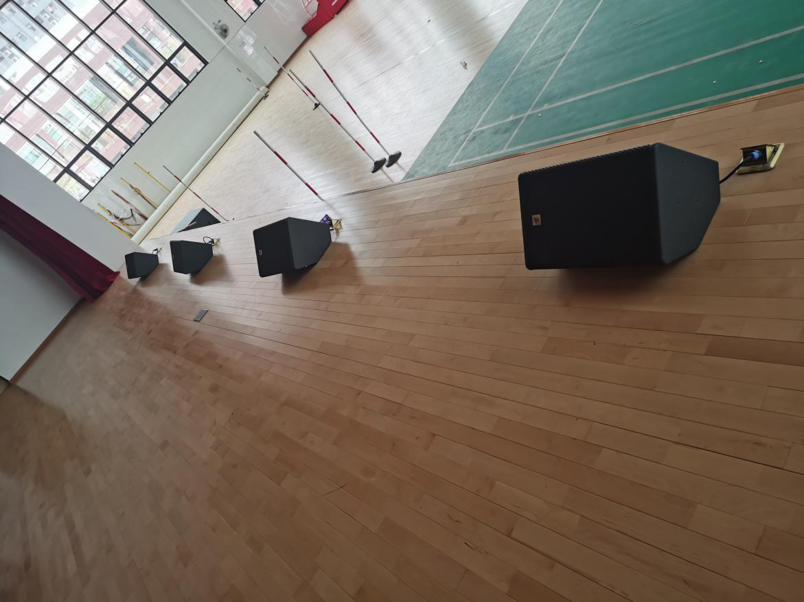 該擴(kuò)聲系統(tǒng)設(shè)計(jì)功能明確,以BAIANGDE TZ系列線陣為主擴(kuò)聲音箱,舞臺(tái)上方左右各4只TZ-210,搭配2只TZ-218S超低頻音箱使用,超低頻音箱擺放在舞臺(tái)前方左右兩側(cè),考慮到體育館深度的問(wèn)題,為了保證聲音的均勻度,后場(chǎng)采用6只MT-12作為補(bǔ)聲音箱,每邊三只。整個(gè)擴(kuò)聲系統(tǒng)為觀眾帶來(lái)一個(gè)音質(zhì)真實(shí)、中高低頻層次豐富,動(dòng)態(tài)飽滿的擴(kuò)聲效果。 由于學(xué)校經(jīng)常有演出,考慮到表演人員能及時(shí)獲取現(xiàn)場(chǎng)演出效果而做出更好的調(diào)整和發(fā)揮,舞臺(tái)上則采用了4只MC-12作為返聽(tīng)音箱,整體擴(kuò)聲充分考慮各區(qū)音質(zhì)效果,為觀眾建立了一個(gè)音質(zhì)真實(shí)清晰,動(dòng)態(tài)充沛有力的聽(tīng)覺(jué)環(huán)境。