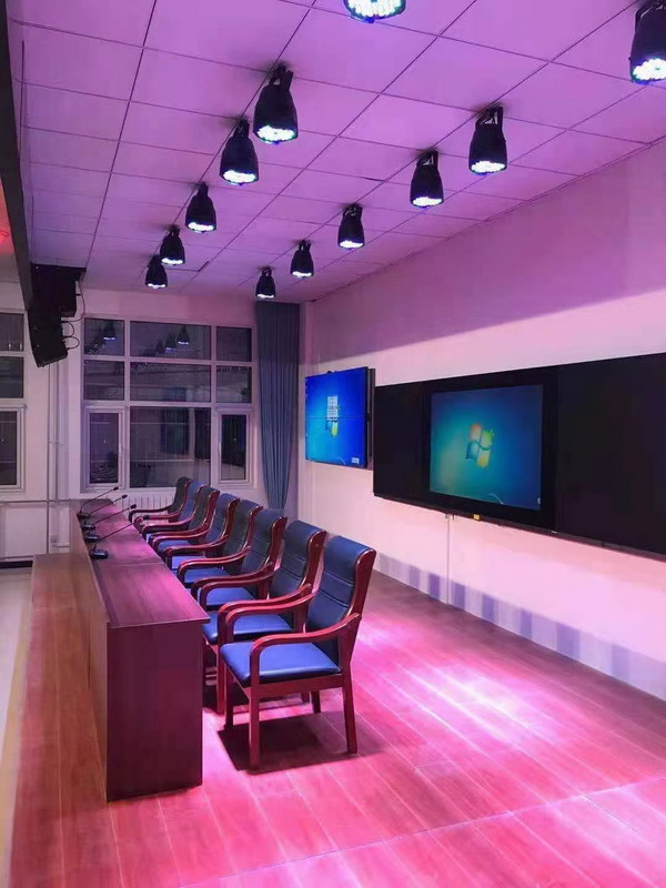 燈光方面,舞臺上方配置了染色燈,面光燈等,以滿足開會(huì),演出等多種使用功能。
